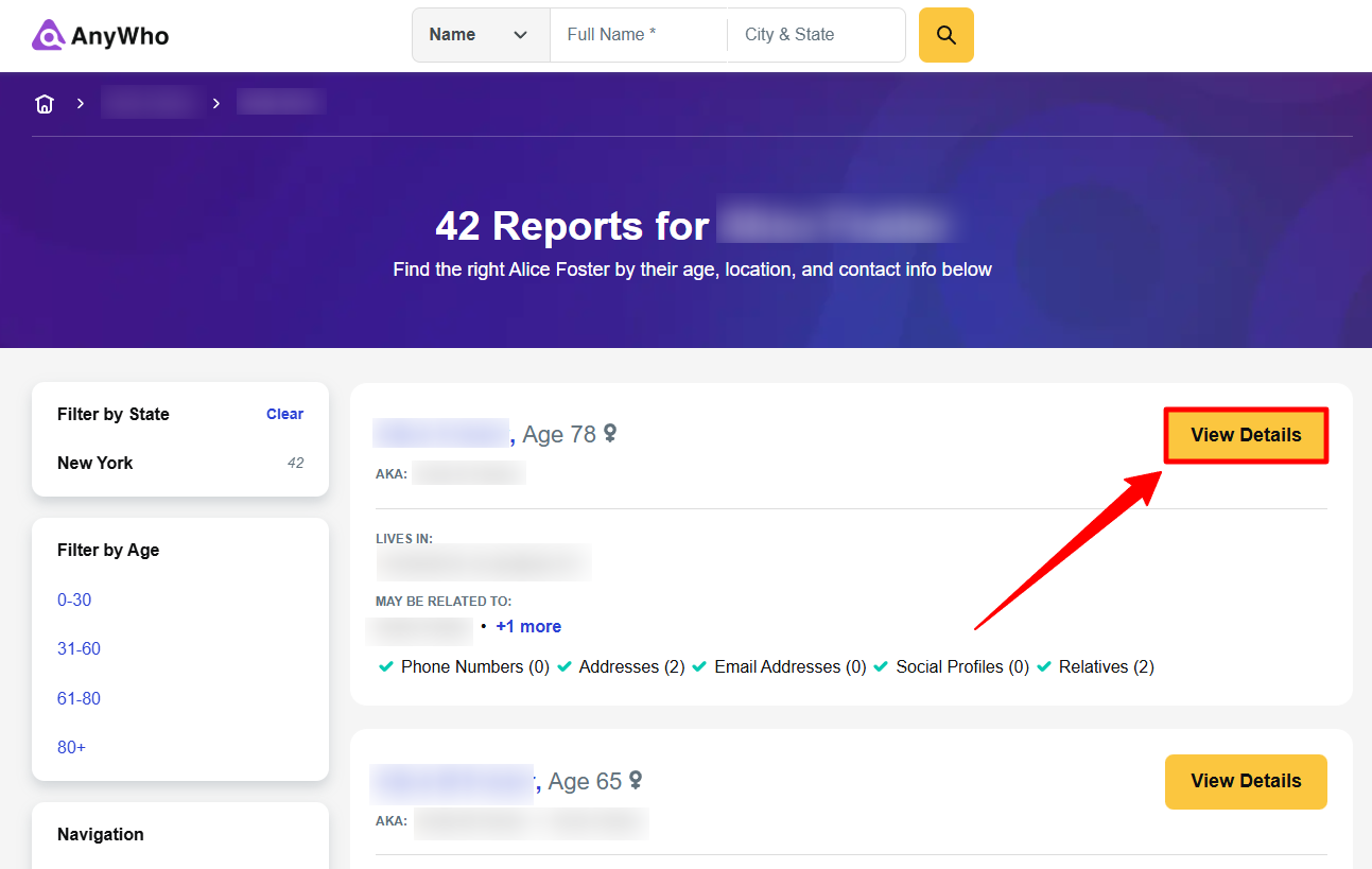Access the data broker's website: https://www.anywho.com/