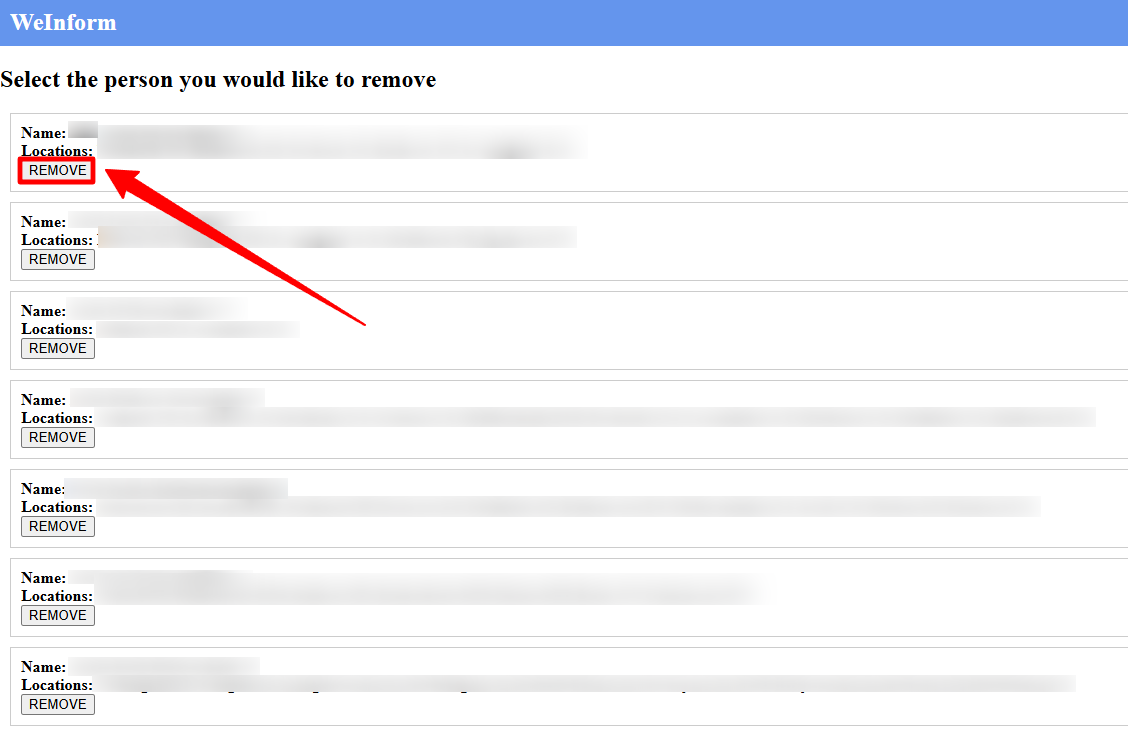 From the populated results, click on 'Remove'.