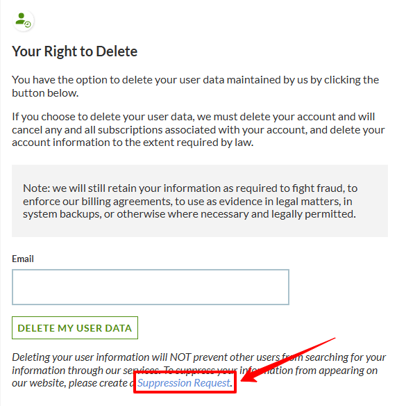 You will be directed to PeopleConnect since the company uses this for suppression requests.