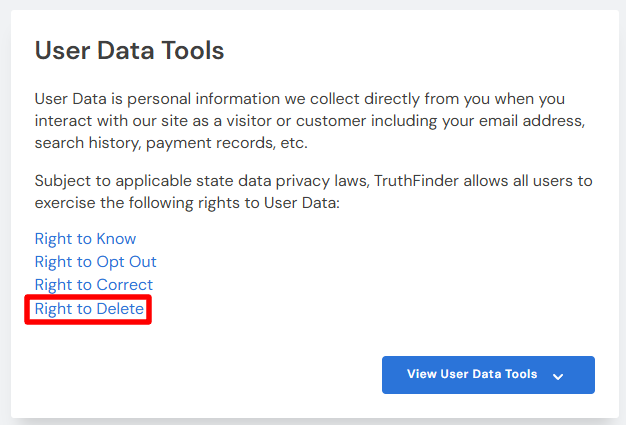 Alternatively, you may directly go to the Privacy Center: https://www.truthfinder.com/privacy-center/.