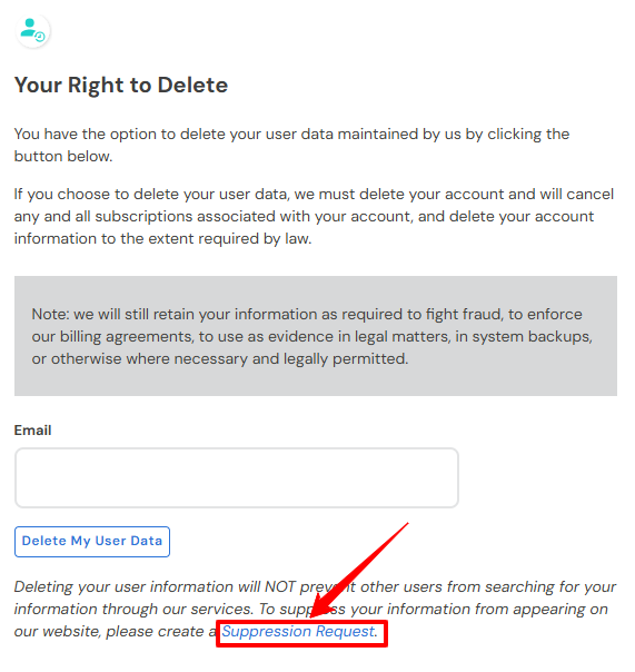 You will be directed to PeopleConnect since the company uses the site for suppression requests.